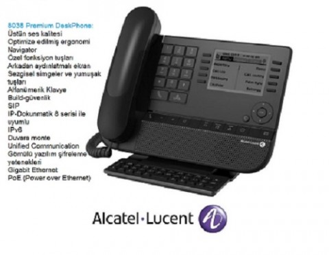 Alcatel-Lucent 8038 Premium DeskPhones zengin bir IP iletişim özelligine ve eller serbest ya da konfor ahizesini kullanan olağanüstü bir geniş bant ses kalitesiyle mükemmel görüşme konforu sunar. Bu yeni yenilikçi tasarım setleri, ayarlanabilir ayak standı, alfabetik klavye, arkadan aydınlatmalı ekran, özel işlev tuşları, kullanıcı dostu navigatör gibi kapsamlı bir aksesuar seti gibi ergonomik geliştirmelerle birlikte geliyor. Tüm bu unsurlar, kullanıcının günlük işlerini kolaylaştırır. Her üç Premium DeskPhone da biri Ethernet üzerinden Power'ı destekleyen iki Gigabit Enerji Verimli Ethernet portu içerir. Bu zarif cihazlar, Alcatel-Lucent Enterprise platformlarının tüm zengin telefon özelliklerini tamamlıyor ve destekliyor.